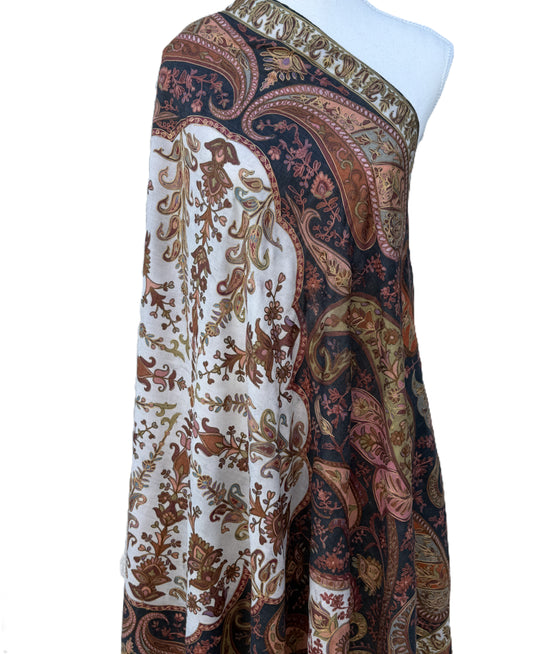 Women’s Kani Pashmina Shawl – Black Base with Vibrant Multicolour Paisley Design