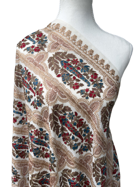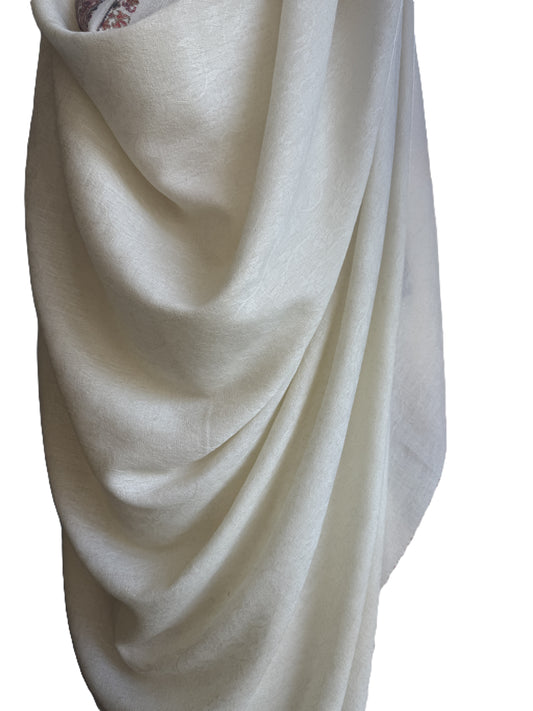Ivory Pashmina Shawl with Kashmiri Paisley Embroidery
