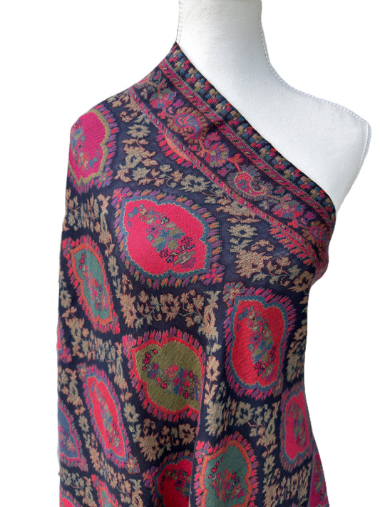 Navy Blue Kashmiri Pashmina Shawl with Bold Paisley Motifs