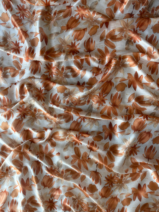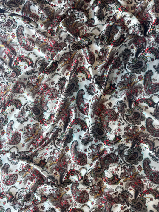 Silk Blend Scarf – Red & White Rose on Black and Ivory Base