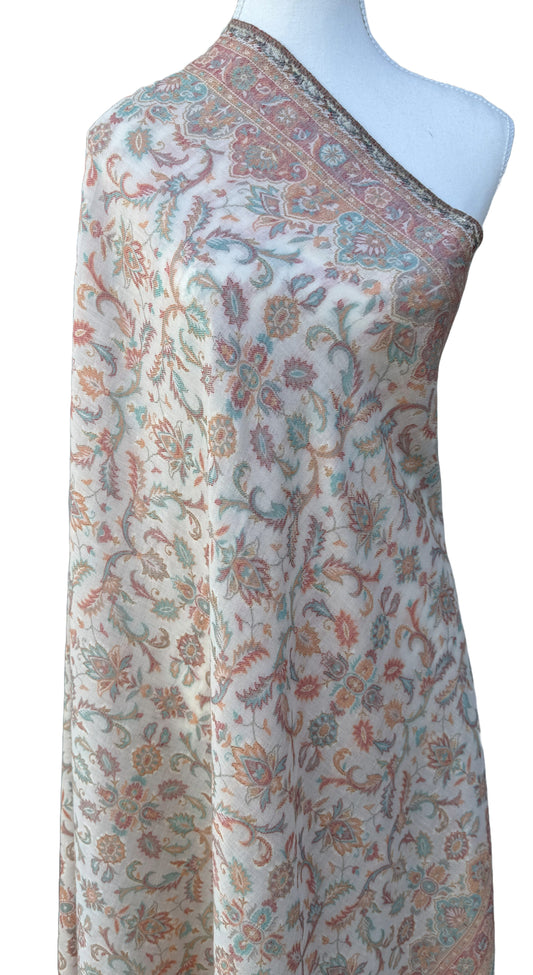 Kani Pashmina Shawl – Ivory Base with Rose & Olive Floral Jaal Design