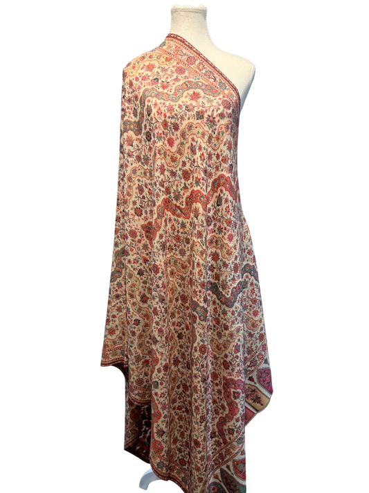 Beige Pashmina Shawl with Kashmiri Embroidered Border