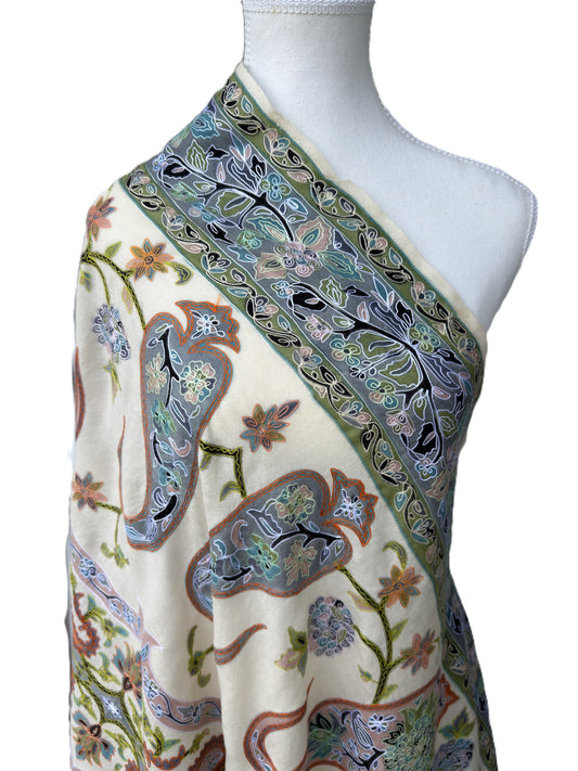 Ivory Garden Pashmina Shawl with Paisley Heritage Design