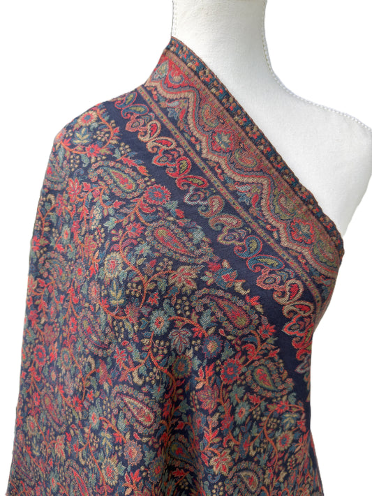 Navy Blue Kashmiri Pashmina Shawl with Bold Paisley Motifs
