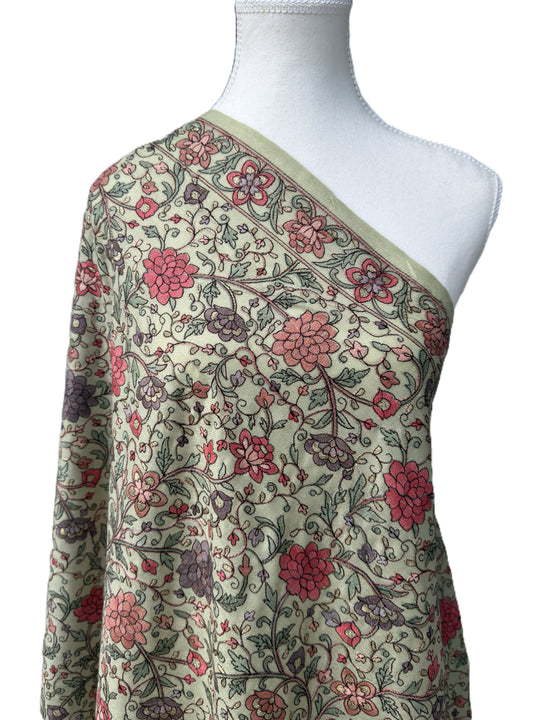 Sage Green Embroidered Pashmina Shawl – Kashmiri Floral