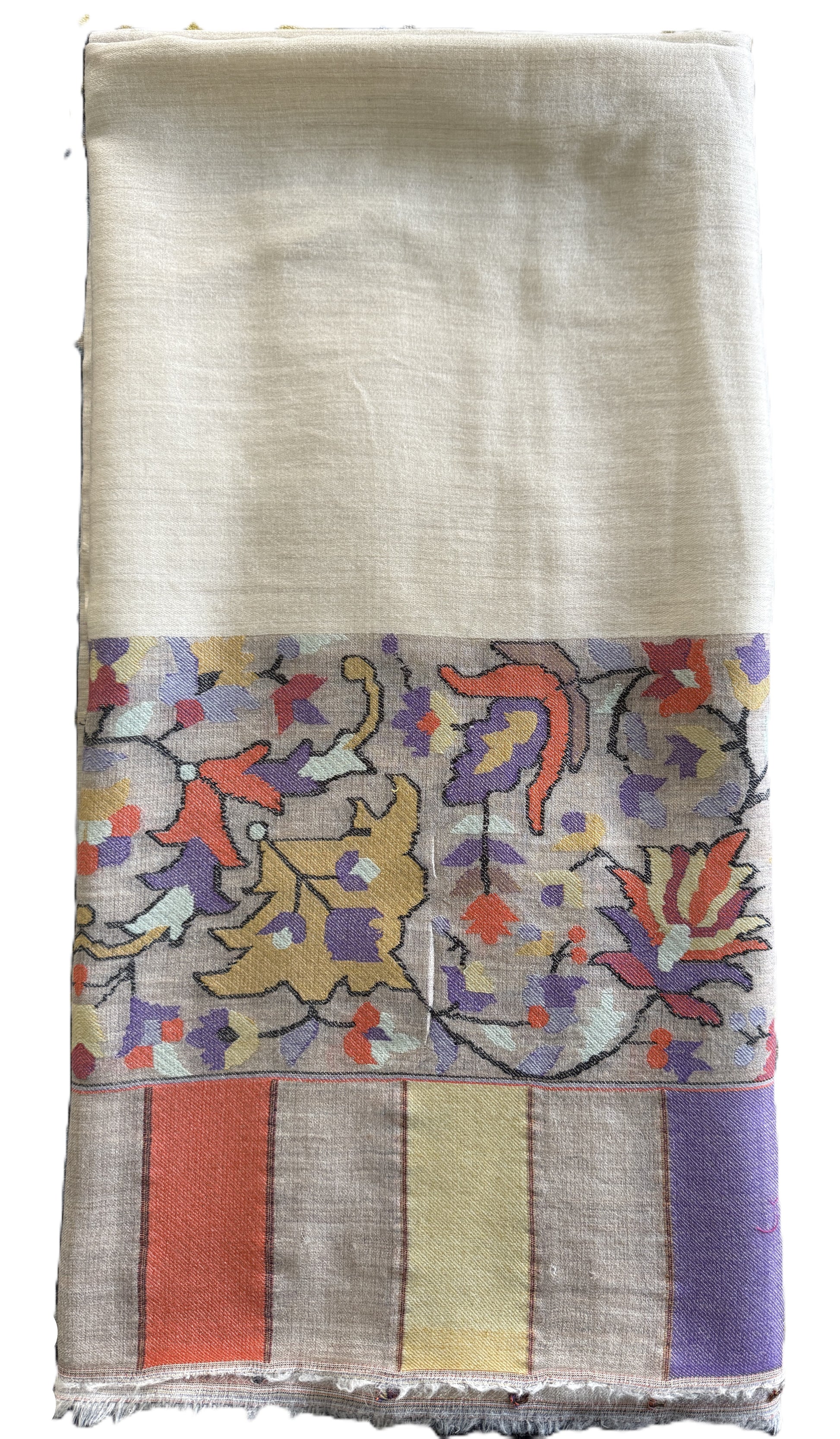 Experience luxury and comfort with our Pashmina Kani Shawl. Handcrafted in Kashmir, this cream-colored shawl features a delicate kani design on both ends. Made from the finest pashmina material, it offers unparalleled softness and lightweight warmth. Indulge in a touch of sophistication with this timeless accessory.